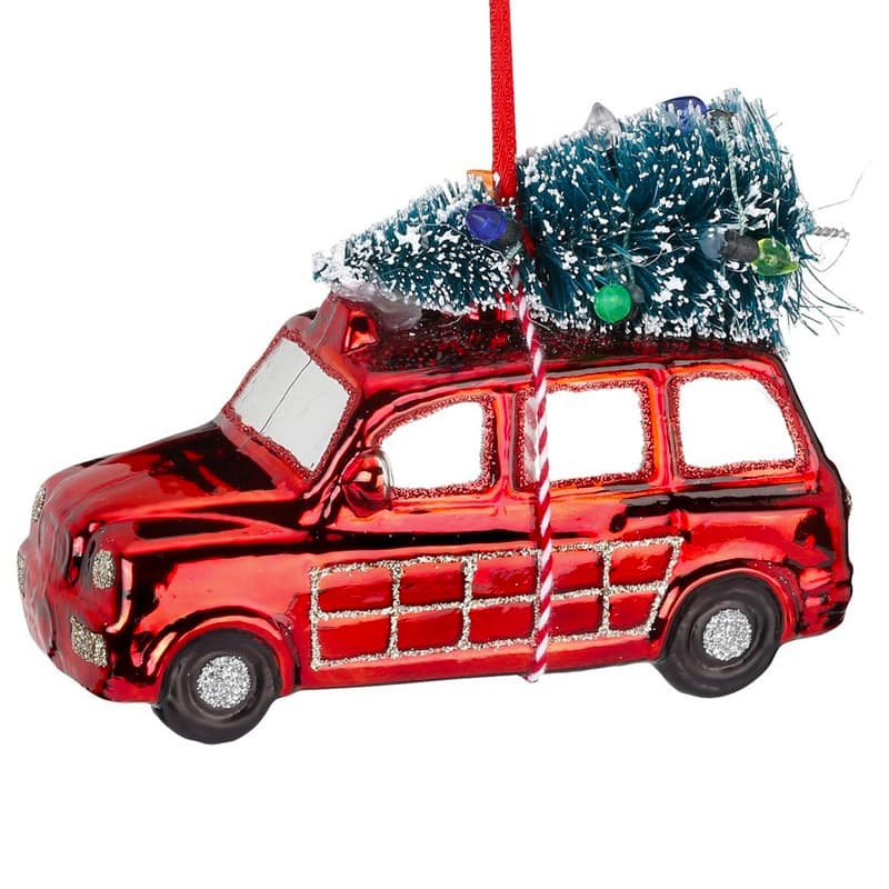 Glazen Kerstbal - Auto met kerstboom op dak