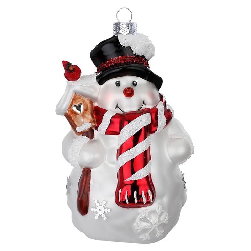 Deze leuke sneeuwman kijkt je vrolijk aan vanuit de kerstboom, daar word je toch blij van!