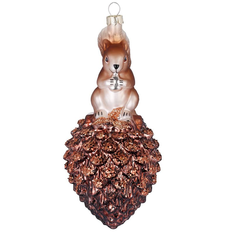 Glazen Kerstbal - Eekhoorn op dennenappel