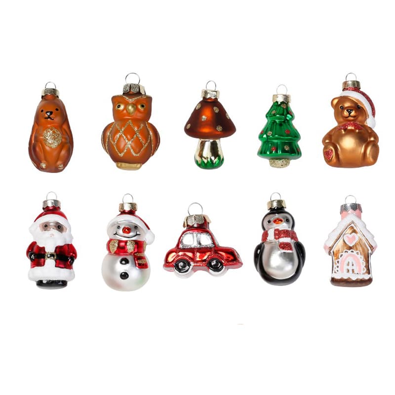 Op zoek naar een klein, leuk, grappig ornamentje voor in de kerstboom of in een kersttak bijvoorbeeld? Dan zijn deze mini-balletjes superleuk! In tien varianten te verkrijgen; uil, eekhoorn, paddenstoel, kerstboom, kerstman, sneeuwpop, kersttruck, pinguin, peperkoekhuisje en teddybeer.