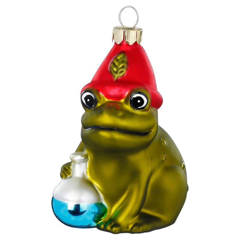 Glazen Kerstbal - Pad met muts en toverdrankje