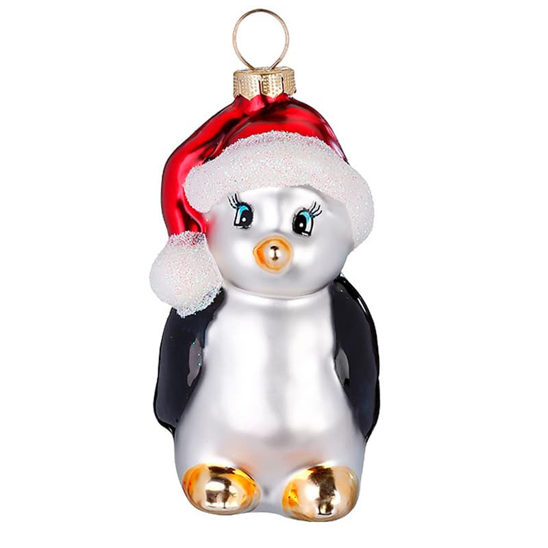 Deze babypinguin doet zijn uiterste best op te boksen tegen zijn grote oom de keizerspinguin en gooit alle schattigheid in de strijd. Een kerstmuts, lange wimpers en een schattige blik, daar kun je toch geen weerstand aan bieden?