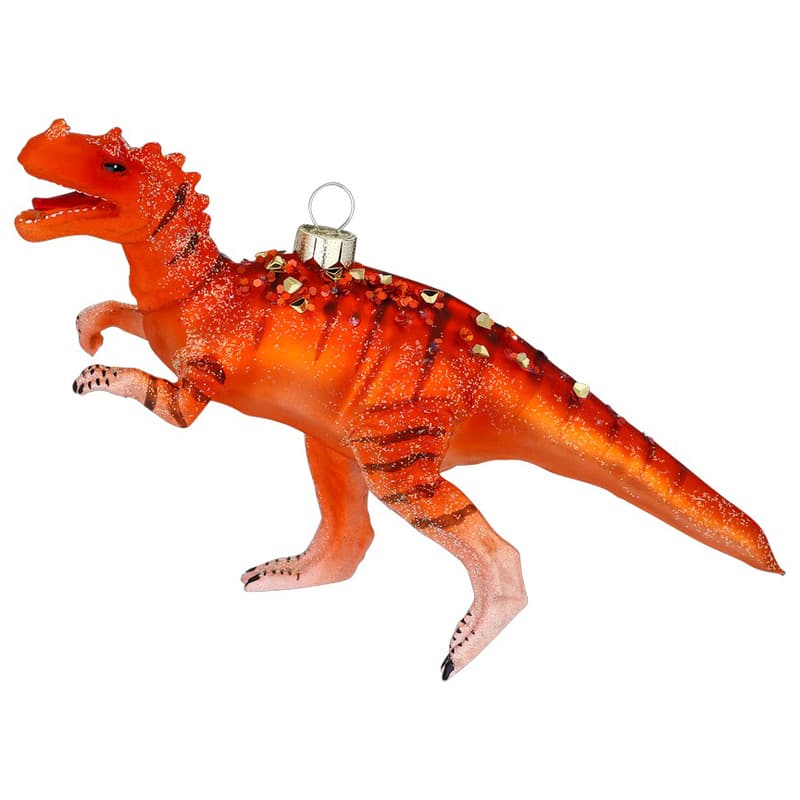 We hebben weer nieuwe dinosaurussen voor in de kerstboom! Nu ook deze stoere, roodoranje dinosaurus!