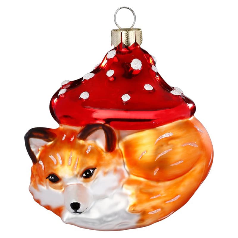 Deze vos ligt opgekruld onder de paddenstoel, echt een feestelijke aanwinst voor je kerstboom!