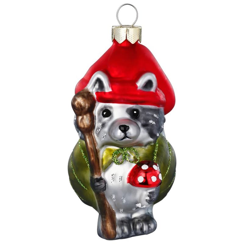 Dit vrolijke wasbeer met zijn staf en paddenstoel biedt een supervrolijk aangezicht!