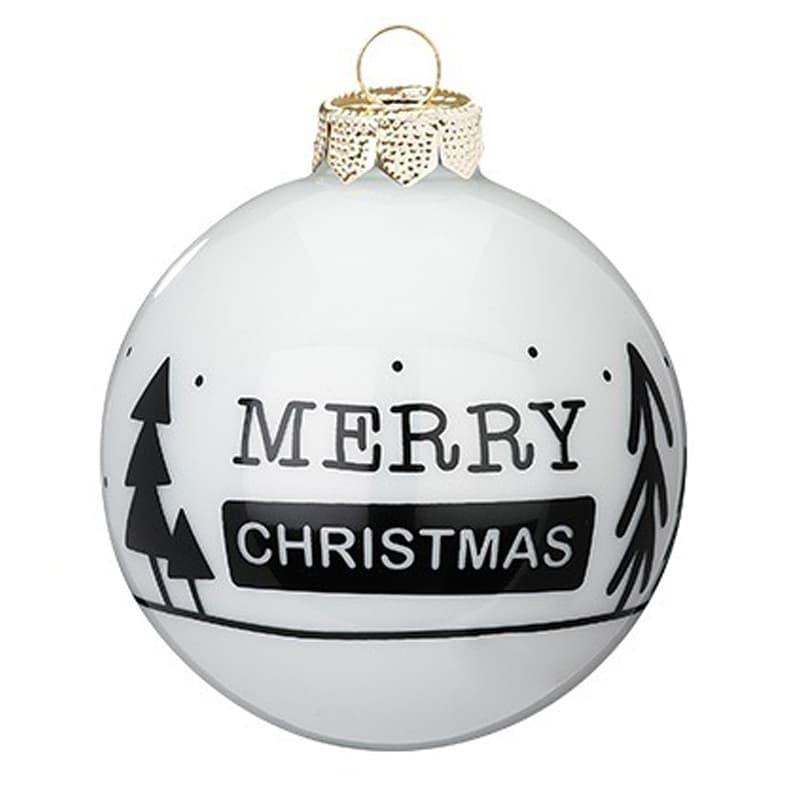 Glazen kerstbal - Wit met zwarte tekst Merry Christmas
