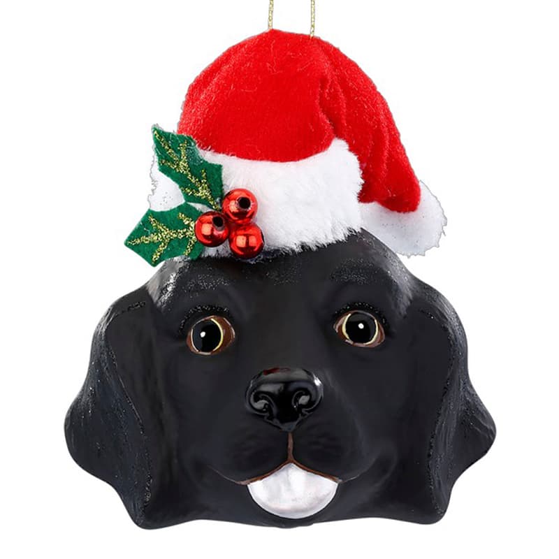 Glazen Kerstbal - Zwarte hond met kerstmuts